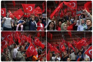 Programda Balıkesirli milli sporcuların sahneye çıkmasıyla hep bir ağızdan söylenen “Bu Bayrak” isimli şarkıya tüm salon Türk Bayraklarıyla eşlik ettiler.