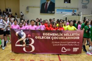 Ulu Önder Gazi Mustafa Atatürk’ün çocuklara en büyük armağanı olan 23 Nisan Ulusal Egemenlik ve Çocuk Bayramı, Balıkesir Büyükşehir Belediye Başkanı Ahmet Akın’ın kent genelinde tüm çocuklara yönelik etkinlikleriyle sürüyor. “Balıkesir Uluslararası Çocuk Festivali” ile dünya çocuklarını Balıkesir’de ağırlayan ve 5 günlük kapsamlı bir programla çocuklara unutulmaz bir bayram yaşatan Başkan Akın öncülüğünde tüm çocuklar birbirinden güzel zaman geçiriyor. Sporla eğlencenin birleştiği 23 Nisan Mini Voleybol Şenliği ise genç sporcuları Alparslan Türkeş Spor Salonu’nda bir araya getirdi. Üç gün süren turnuvada Balıkesir Büyükşehir Belediyespor, Mehmet Şeref Eğinlioğlu, Balıkesir Voleybol Akademi, General Kemal Balıkesir Ortaokulu, Açı Koleji, DSİ Spor Kulübü, Eka Spor Kulübü ve Gençlik Spor Merkezinden sporcular performanslarıyla göz doldurdu.