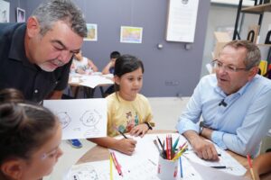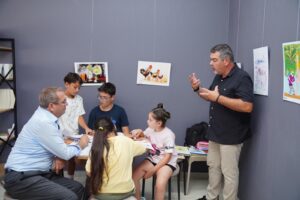 Çocukları atölyeye davet eden Ayvalık Belediye Başkanı Mesut Ergin,“Gelin yaz tatilinizi bu