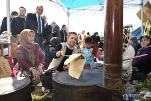 ????Balıkesir Büyükşehir Belediye Başkanı Ahmet Akın, Büyükşehir Belediyesinin destekleriyle, Balıkesir Üniversitesi Dağcılık ve Kış Sporları Topluluğu (BAÜDAKS) ve Balıkesir Dağcılık İl Temsilciliği tarafından bu yıl altıncısı düzenlenen Kepsut Nusret Kaya Tırmanış Festivali’ne katıldı. Programa Başkan Akın ve eşi Arbil Akın’ın yanı sıra; CHP Balıkesir Milletvekili Serkan Sarı, CHP Balıkesir İl Başkanı Erden Köybaşı, Balıkesir Büyükşehir Belediye Başkan Vekili Volkan Altınöz, BBB Gençlik ve Spor Hizmetleri Daire Başkanı Uğur Baysal, Muhtarlık İşleri Daire Başkanı Erkan Uzun katıldı. Akın, Türkiye’nin dört bir yanından gelerek Nusret Köyü festival alanında kamp kuran gençlerle sohbet etti. Festival alanının mevcut koşullarının iyileştirilmesi için sporcuların talep ve isteklerini dinleyerek not eden Akın, dağcılık sporuna gönül vermiş herkesin yanında olacağını söyledi. Akın, festival alanında gözleme pişiren kadınlarla sohbet etti. Ardından sacın başına oturan Akın, gözleme pişirdi. Keyifli anların yaşandığı festivalde, Akın, sporcularla birlikte tırmanış gerçekleştirdi.