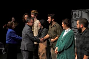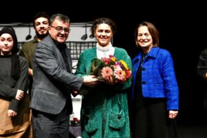 destek verdi. Gösterimlerin ardından sahneye çıkan Başkan Şehirli, oyunculara çiçek takdim