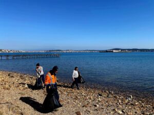 uzanan hatta devam etti. Ekipler, sahil boyunca biriken atıkları toplarken çevreye atılan sigara