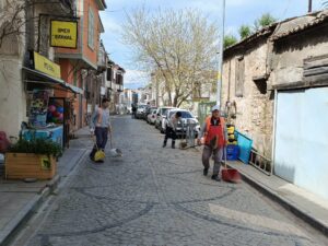 Süpürme, yıkama ve çöp toplama faaliyetlerinin titizlikle yürütüldüğü çalışmalarda, ekipler