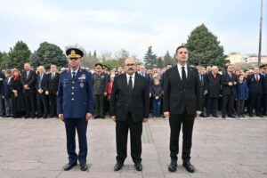 Balıkesir’de 10 Kasım Atatürk’ü Anma Günü etkinlikleri çerçevesinde Atatürk Anıtı önünde tören düzenlendi. Törene, Balıkesir Büyükşehir Belediye Başkanı Ahmet Akın’ın yanı sıra Balıkesir Valisi İsmail Ustaoğlu, Garnizon Komutanı Hv. Plt. Tuğg. Gökhan Gürakar, CHP Balıkesir Milletvekili Serkan Sarı, AK Parti Balıkesir Milletvekili İsmail Ok, Vali Yardımcıları, ilçe belediye başkanları, siyasi partilerin il başkanları, protokol üyeleri, öğrenciler ve çok sayıda vatandaş katıldı. Balıkesir Valiliği, Garnizon Komutanlığı ve Büyükşehir Belediye Başkanlığı çelenkleri sırasıyla Atatürk Anıtı’na konuldu.