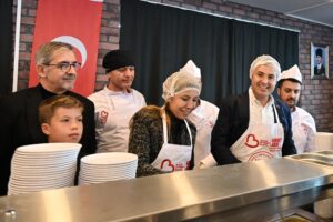 Balıkesir’e örneği olmayan büyük bir aşevi açılacağı müjdesini veren Akın, “Bununla birlikte bütün kent lokantalarımızın sayısını arttırıyoruz. Ve bunun yanında ihtiyaç sahibi mahallelerimize kent mutfakları kuruyoruz. 20 ilçemizin ihtiyaç duyulan mahallelerinde kent mutfaklarının yerlerini tespit ettik. Kent mutfakların şu anda tasarımları da bitti. İnşası devam ediyor. Bunlar açılacak. Ve o ailelerimiz, çocuklarını alacaklar oradan gidip çok cüzi fiyata alışverişini yapabilecekler. Bunları da yakında hizmetimize sunacağız.” dedi.
