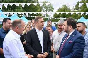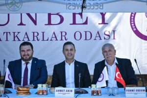 Balıkesir’de önemli bir potansiyel olduğunu belirten Başkan Ahmet Akın “Balıkesir’imiz Türkiye’nin parlayan yıldızı olacak. Öyle büyük bir potansiyel var ki ve öyle büyük bir coğrafya ki önemli olan planlı, programlı ilerlemek. Sizlerle el ele, kol kola vererek kısa sürede güzel işler yapmaya devam edeceğiz. Dursunbey benim de memleketim. Bakın göreve başlayalı kaç ay oldu ama buraya üçüncü, dördüncü gelişim. O kadar güzel bir coğrafya ki, o kadar güzel insanların memleketi ki Balıkesir; Dursunbey de bir o kadar güzel. İşte bu güzelliği kazanca, berekete doyurmak bizim görevimiz. Biz hepimiz devletimizle birlikte sizlerin emrindeyiz. Allah’ın izniyle bereketinizi de artıracağız.” şeklinde konuştu.