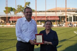 Ayvalık Belediye Başkanı Mesut Ergin, Sarı Zeybek Spor Tesisleri’nde düzenlenen anma