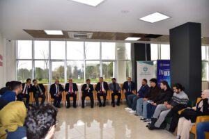 Genç Ofis’te düzenlenen toplantıya, Balıkesir Üniversitesi Rektörü Prof. Dr. Yücel Oğurlu,