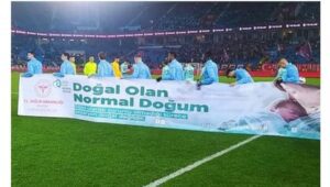 Futbol sahasında, binlerce kişinin gözü önünde yapılan “doğal doğum” yönündeki dayatmalara tepki gösteren Türker Yılmaz, “Kadınlar nasıl doğuracaklarına, nasıl yaşayacaklarına, ne giyeceklerine ve nasıl konuşacaklarına sizin değil, kendi iradeleriyle karar verir. Kadının doğum tercihi mahremiyetidir. Sahanızdan elinizi, bedenimizden de dilinizi çekin!” ifadelerini kullandı.