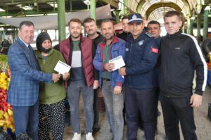 Başkan Vekili Tarık Erdil, pazar yerinde esnafı ve vatandaşları bilgilendirerek