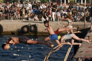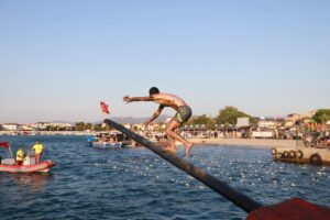 Geleneksel yarışmaların bir diğer eğlenceli etabı olan denizde ördek yakalama etkinliğinde de