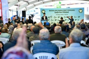 Geniş coğrafyası ve verimli arazileri ile Türkiye’nin parlayan yıldızı olan Balıkesir’de tarımsal üretimin artması için Balıkesir Büyükşehir Belediye Başkanı Ahmet Akın’ın çiftçilere desteği her geçen gün artıyor. Göreve başladığı günden bu yana kırsal kalkınmayı desteklemek ve tarımsal üretimi arttırmak amacıyla çiftçinin omzundaki yükü azaltan projeleri birer birer hayata geçiren Akın, Balya’daki Badalan Fasulyesi tohumu dağıtım törenine katıldı. Törene Akın’ın yanı sıra Balya Belediye Başkanı Orhan Gaga, Balıkesir Büyükşehir Belediyesi Başkan Vekili Volkan Altınöz, Balya Ziraat Odası Başkanı Mustafa Fındık, muhtarlar ve üreticiler katıldı. Sınırlı Sorumlu Dörtyol Köyü Tarımsal Kalkınma Kooperatifi’nin 2025 yılında kullanacağı 1.500 kilogram Badalan fasulyesi tohumu üreticilere dağıtıldı. Başkan Akın, Büyükşehir Belediyesi olarak çiftçinin 2025 yılında üretimde kullanabileceği 1.500 kilogram Badalan fasulyesi tohumunu ilk defa yüzde 100 hibeyle üreticilere dağıttı. Sürdürülebilir tarım uygulamalarının teşvik edilmesi ve çiftçinin emeğinin hak ettiği değeri görmesi için Balıkesir’de ekilmeyen yer kalmayacağını dile getirdi.