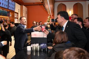 On On Kafe’nin tüm Havranlılara hayırlı uğurlu olmasını dileyen Ahmet Akın, “Seyit Onbaşı’nın memleketinde, Seyit Onbaşı’nın torunlarıyla bir aradayız. Son 7 ayda 7 şubemizi hayata geçirdik. 20 dönümlük alanda çok güzel bit atmosferdeyiz. Şimdi burayı hem tatlandırmak hem de lezzetlendirmek, sosyal hayata destek olmak için On On Kafe’mizi Havranlı hemşehrilerimizle buluşturduk. 20 ilçemizde sosyal alanlara ihtiyaç var. Halkımız için güzel ortamları oluşturmak için uğraşıyoruz. Ekonomik sıkıntılar ortada bu ekonomik sıkıntılarda halkımıza bir nebze olsun destek olmak, onların yanında olmak istiyoruz. Balıkesir, Türkiye’nin değil dünyanın en güzel kentidir. Körfeziyle, merkeziyle, Güney Marmara’sı ile baktığınız zaman bütün güzellikler bizde. Kuvayi Milliye anlayışı, o azim ve kararlılık bizde. Biz bu azim ve kararlılığı, bu anlayışı bize emanet edilen Cumhuriyetimizin kurucusu Ulu Önderimiz Gazi Mustafa Kemal Atatürk’ten alıyoruz” şeklinde konuştu. Konuşmaların ardından Başkan Ahmet Akın ve protokol üyeleri kurdele kesimini çocuklarla birlikte yaptı.