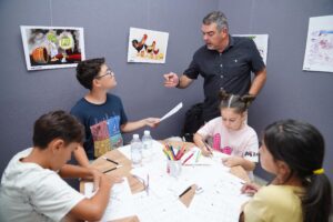 ediliyor. Atölyede çocuklar, karikatürist Altan Özeskici eşliğinde temel çizim tekniklerini