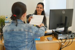 Noktasındaki görevli arkadaşımız, iş arayanların kaydını alacak veya