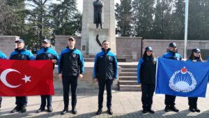 Şehrin huzuru ve güvenliği için Zabıta ekiplerinin 7/24 görev başında olduğunu söyleyen Başkan Akın, “İstiklal Marşı’mızın kabulünün 104. yıl dönümü dolayısıyla Zabıta Teşkilatımız çok anlamlı bir proje oluşturdu. Her bir zabıtamızla birlikte İstiklal Marşı’mızı tek yürek olup okumak beni çok duygulandırdı. Çünkü biz bu topraklar için canını hiç düşünmeden veren, ay yıldızlı bayrağımızı dalgalandırmak için vatan savunmasında şehit düşenlerin torunlarıyız. Bizler, Kuvayı Milliye meşalesinin yakıldığı şehrin vatansever evlatlarıyız. Bu vatanı bizlere miras bırakan Ulu Önderimiz Gazi Mustafa Kemal Atatürk ve tüm şehitlerimizi minnetle yâd ediyoruz. Adını gururla taşıdığım İstiklal Madalyalı bir dedenin torunu olarak; halkımızın kurtuluş mücadelesini İstiklal Marşı ile taçlandıran, hepimizin gururla okuduğu bu güzel eseri bizlere miras bırakan İstiklal Şairi’miz Mehmet Akif Ersoy’u rahmet ve minnetle anıyorum.” şeklinde konuştu.