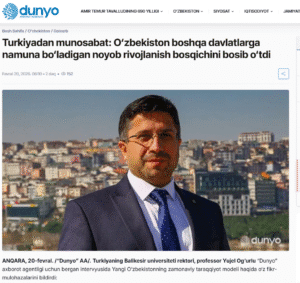 Balıkesir Üniversitesi Rektörü Prof. Dr. Yücel Oğurlu, Özbekistan’ın resmi haber