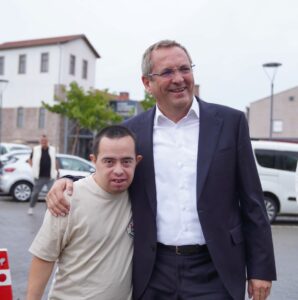 Baran, mutluluğunu Başkan Ergin’e sarılarak dile getirdi. Yüzündeki o saf ve samimi