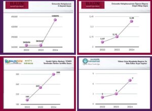 Üniversitenin e-kaynak sayısı ise 2022 ve 2023’te sabit kalmasına rağmen 2024’te ciddi bir artışla